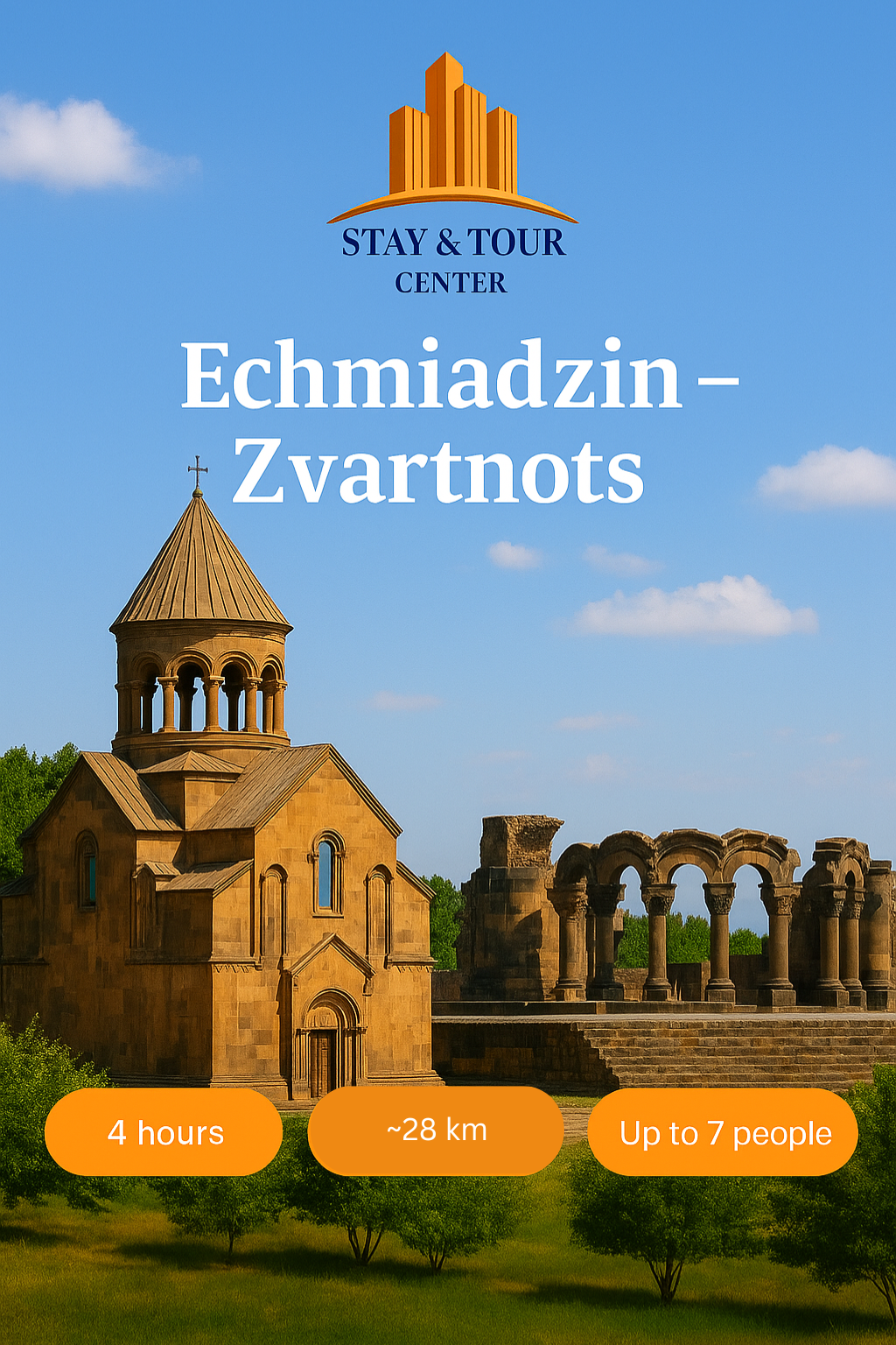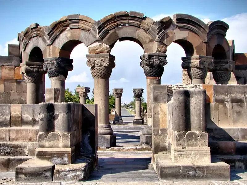 Экскурсия завершается посещением великолепного собора Звартноц , шедевра VII века и, как и другие места в этом путешествии, памятника Всемирного наследия ЮНЕСКО.