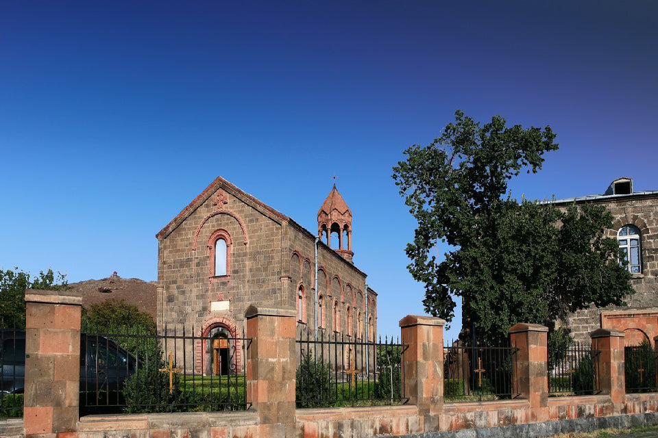 Первая остановка — Ошакан , церковь Святого Месропа Маштоца , создателя армянского алфавита, чьи мощи покоятся здесь. Это одно из самых священных мест в Армении.