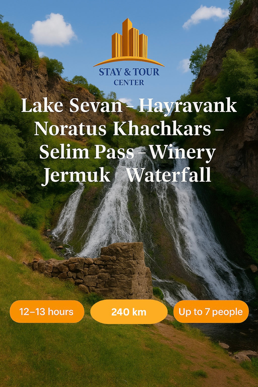 Севан, Айраванк, Норатус Хачкарс, Караван-сарай Селима, Винодельня «Ин Арени», Джермук, Водопад